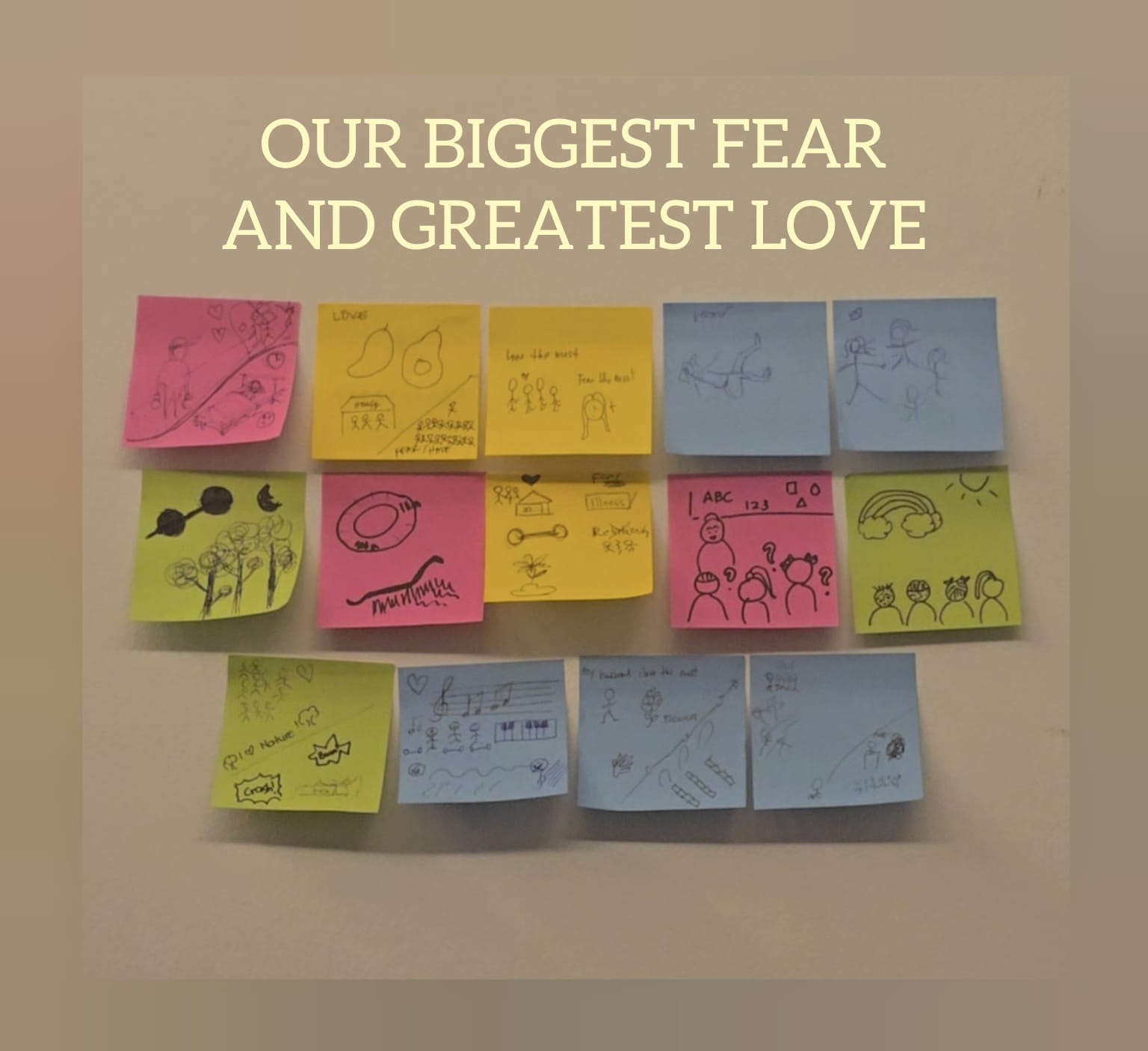 Reflecting on these personal fears and loves, it’s clear that such fears can often paralyze us and hold us back from reaching our greatest potential. Yet, there’s an intriguing irony: many of our fears are closely tied to what we cherish most, as illustrated in our drawings. This connection reveals how our deepest anxieties and passions are intricately linked.