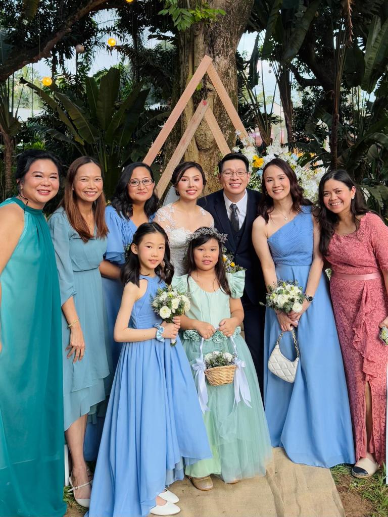 On the wedding day, my makeup was done, and I was ready to slip into my gown. But as I tried to zip it up, my sister and I realized it wasn’t going to close. We thought, Maybe we just need an extra pair of hands. So, we headed off to pick up my other sister to help. On the way out, I rushed to wear my ring and was dumbfounded when I noticed my finger was turning black already because it was just too tight. And as if it was a series of unfortunate events, I struggled to even put on my slip-on shoes as the strap just couldn’t fit. Thanks to my sister who helped me try to squeeze my feet into them.